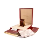 This Ligne 2 S.T. Dupont lighter features a stunning deep red Chinese Lacquer, called the Abstract Art line. It has great edges, no engraving, and almost no wear from all those years. This lighter has just been fully overhauled and serviced, so no gas leaks, and the lighter lights every time! The iconic “cling” sound is clear and is guaranteed to spark curiosity. The lighter is 100% original, not a cheap replica.