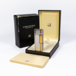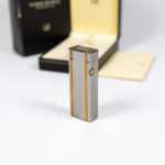 This brushed silver, gold-plated vertical-cut Dunhill Rollagas is truly eye candy. This lighter has been through full service, so no gas leaking. Made approximately in the 1980s, this lighter has excellent edges and almost no wear from all those years. Complete in original box. All in all a beautiful lighter, ready to be a daily carry for many years to come and a must for every collector or enthusiast!