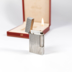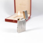 This Silver Ligne 2 S.T. Dupont lighter features a stunning deep-engined turned engravement. The lighter has perfect edges, no engraving, and no wear to its surface from all those years in storage. This lighter has no leaks and it lights every time! The iconic “cling” sound is clear and guaranteed to spark curiosity. It’s 100% original, not a cheap replica. All in all a beautiful lighter, ready to be a daily carry for many years to come and a must for every collector or enthusiast!