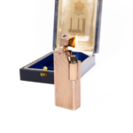 This Solid Silver, Rose gold-plated Dunhill Aldunil is a rare lighter to find. Recently fully overhauled and serviced, so no gas leaking for years to come. Made approximately in the 1970s. The lighter is in great condition, with only minimal wear to its plated surface. This mini Aldunil is shorter than the standard model, making it a perfect size for women or whoever prefers a small and intimate lighter. All parts are individually hallmarked (flint screw cap, inside of snuffer, button of lighter) which indeed proves the lighter is made out of solid silver and is all original. All in all a beautiful lighter, ready to be a daily carry for many years to come and a must for every collector or enthusiast!
